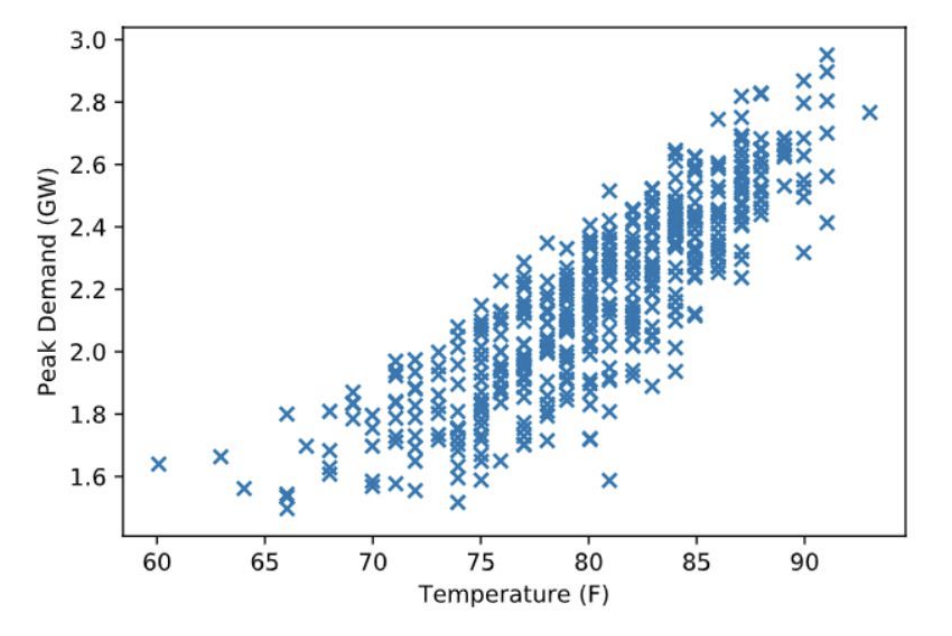 Peak_Demand $\approx \theta_1 \cdot$ High_Temperature $+ \theta_2$