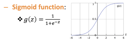 $h_\theta (x) = g(\theta^T x) = \frac{1}{1+e^{-\theta^T x}}$